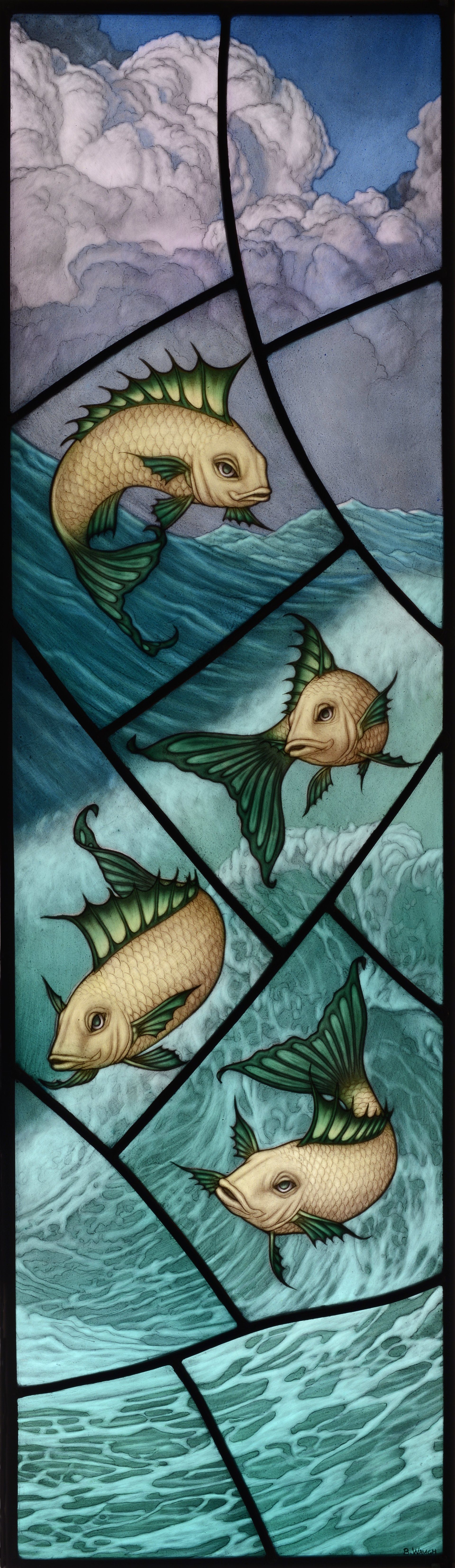Currently, he is working on a stained glass commission of an allegorical harvest scene for a house in London.